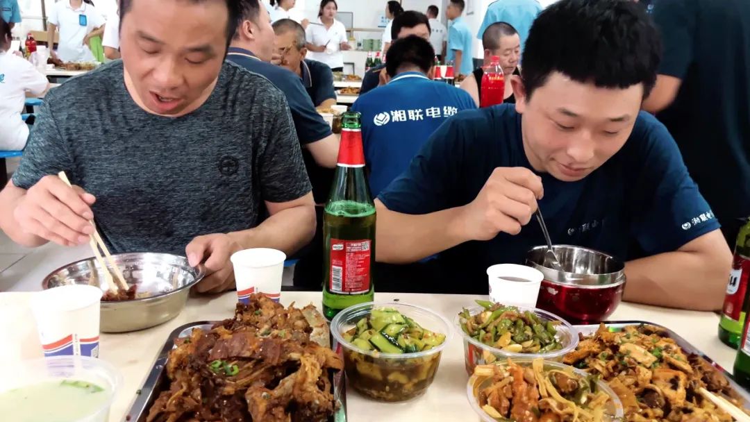 在員工餐廳,大家齊聚一堂,圍桌而坐,時而三倆交流,時而舉杯慶祝,時而專注美食,到處洋溢著一種歡樂的氛圍。肉質鮮美的羊肉、營養豐富的羊雜湯、精致可口的小菜、清爽新鮮的水果、清涼的飲品讓大家的幸福感油然而生。