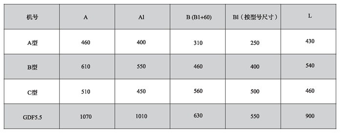 注: A型、B型、C型三檔規(guī)格的尺寸以風(fēng)量為依據(jù),詳見性能參數(shù).