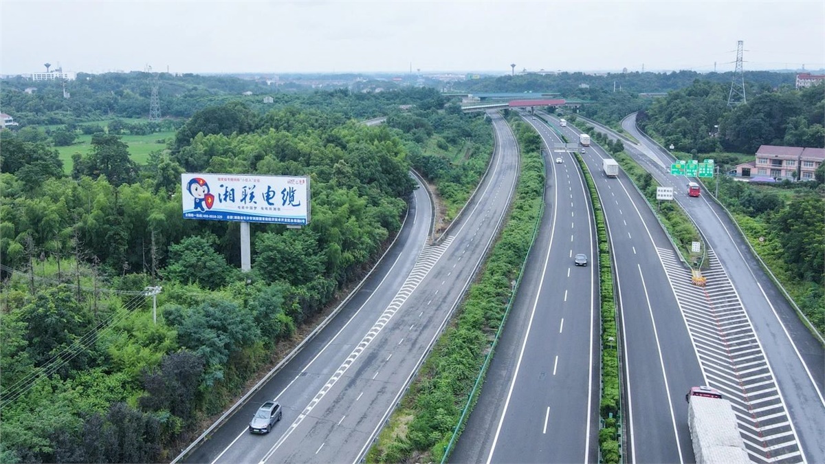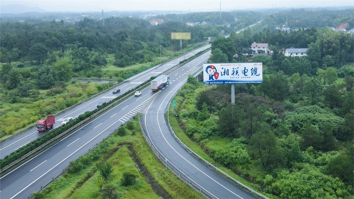 高炮廣告(又稱擎天柱廣告、單立柱廣告)作為戶外廣告的核心載體,以其獨特的空間占位和視覺沖擊力,在品牌傳播中展現出不可替代的商業價值。多年來,湘聯電纜持續亮相高炮廣告,霸屏全國高速優質干線,將“電纜中國夢,有電有湘聯”的企業愿景傳遞給消費者,充分彰顯行業標桿風范。